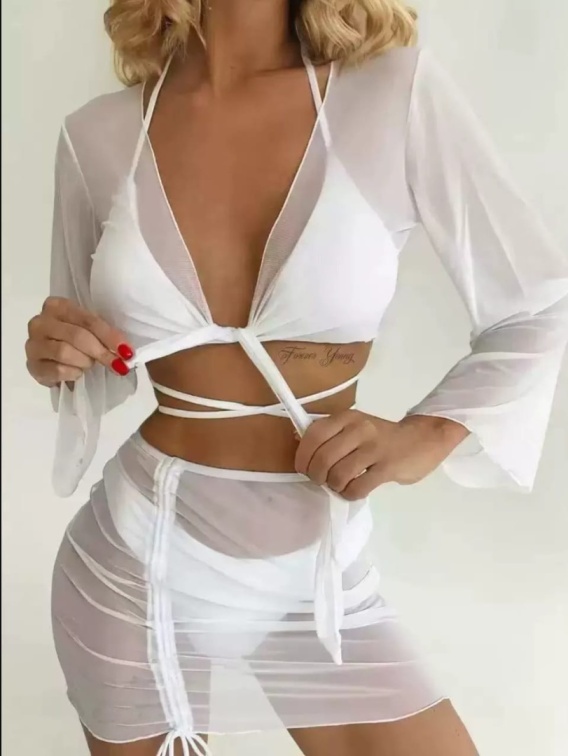 Postaw na wyjątkowy komfort i modny look z naszym trzyczęściowym strojem kąpielowym z efektem subtelnego, mlecznego jedwabiu! Zestaw w najmodniejszy gradientowy print obejmuje długi top, wysokie figi oraz spódniczkę lub sportowy krótki top z marszczoną spódnicą. Uszyty z lekkiego i przyjemnego dla skóry materiału — 95% włókno poliestrowe, waga zaledwie 180 g. Podszewka to 100% delikatny poliester, zapewniający pełną wygodę podczas pływania i sportów wodnych. Elastyczny krój typu one size doskonale dopasowuje się do sylwetki i podkreśla kobiece kształty. Wybierz ten zestaw na plażę lub basen i olśnij wszystkich modnym designem oraz wyjątkową miękkością tkaniny. Zamów już dziś i ciesz się letnią swobodą!